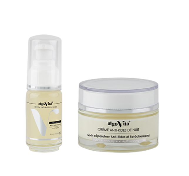 Le pack antirides algoVita est composé d’un sérum antirides et d’une crème antirides.